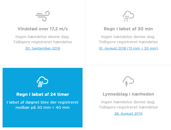 Få et nemt overblik over flere vejrhændelse på den pågældende adresse.