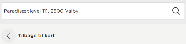 Du kan enten gå tilbage til startsiden med kort og kalender og finde en ny adresse eller blot indtaste den i feltet i toppen af siden.